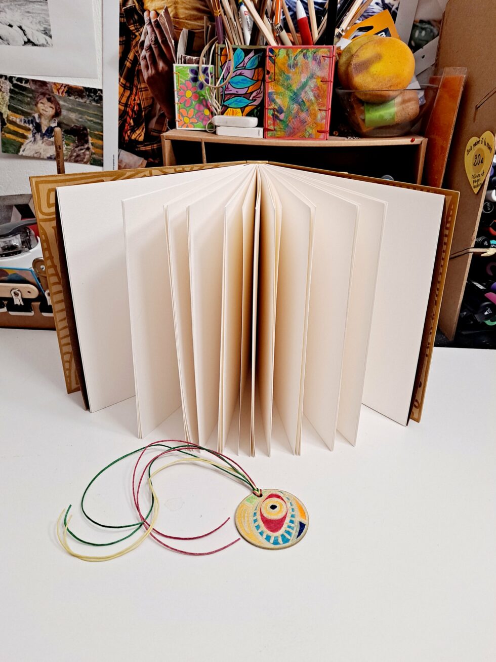 Album DREAMS et son marque-pages assorti, créés entièrement à la main, en un seul exemplaire, dans mon atelier à Marseille.