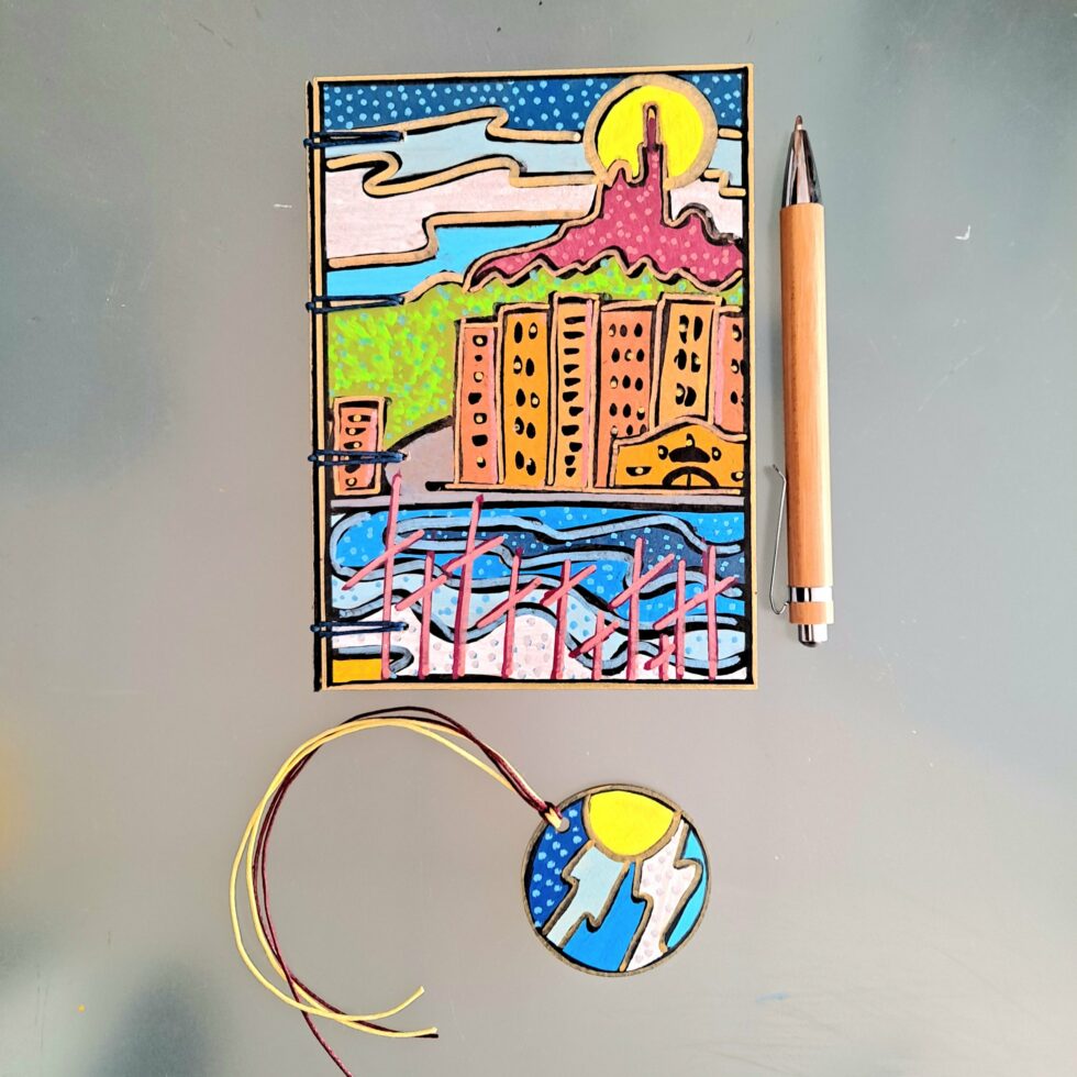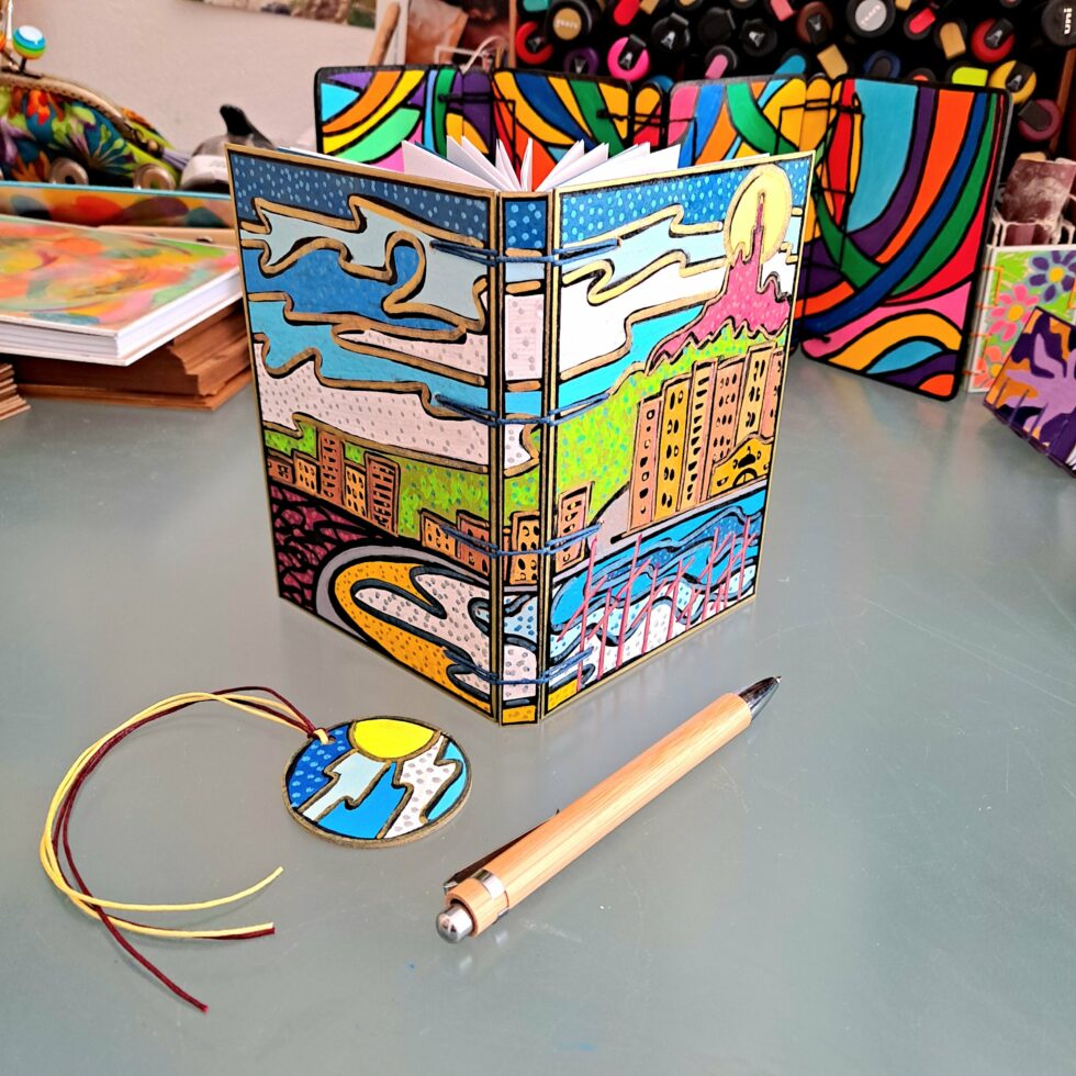 Mes p’tits carnets personnalisés sont entièrement faits à la main. Je crée et fabrique chaque carnet avec soin et passion dans mon p’tit atelier à Marseille. En effet, chaque carnet porte un univers et j’essaie de le restituer à travers le nom que je lui donne. Ainsi, le thème, la couleur et l’ambiance imposent ce nom la plupart du temps.