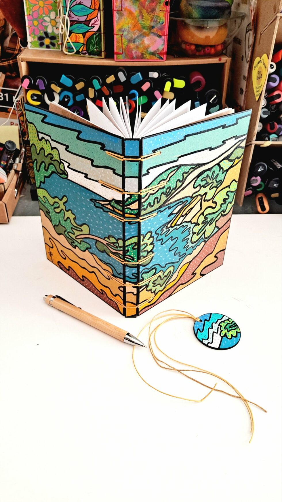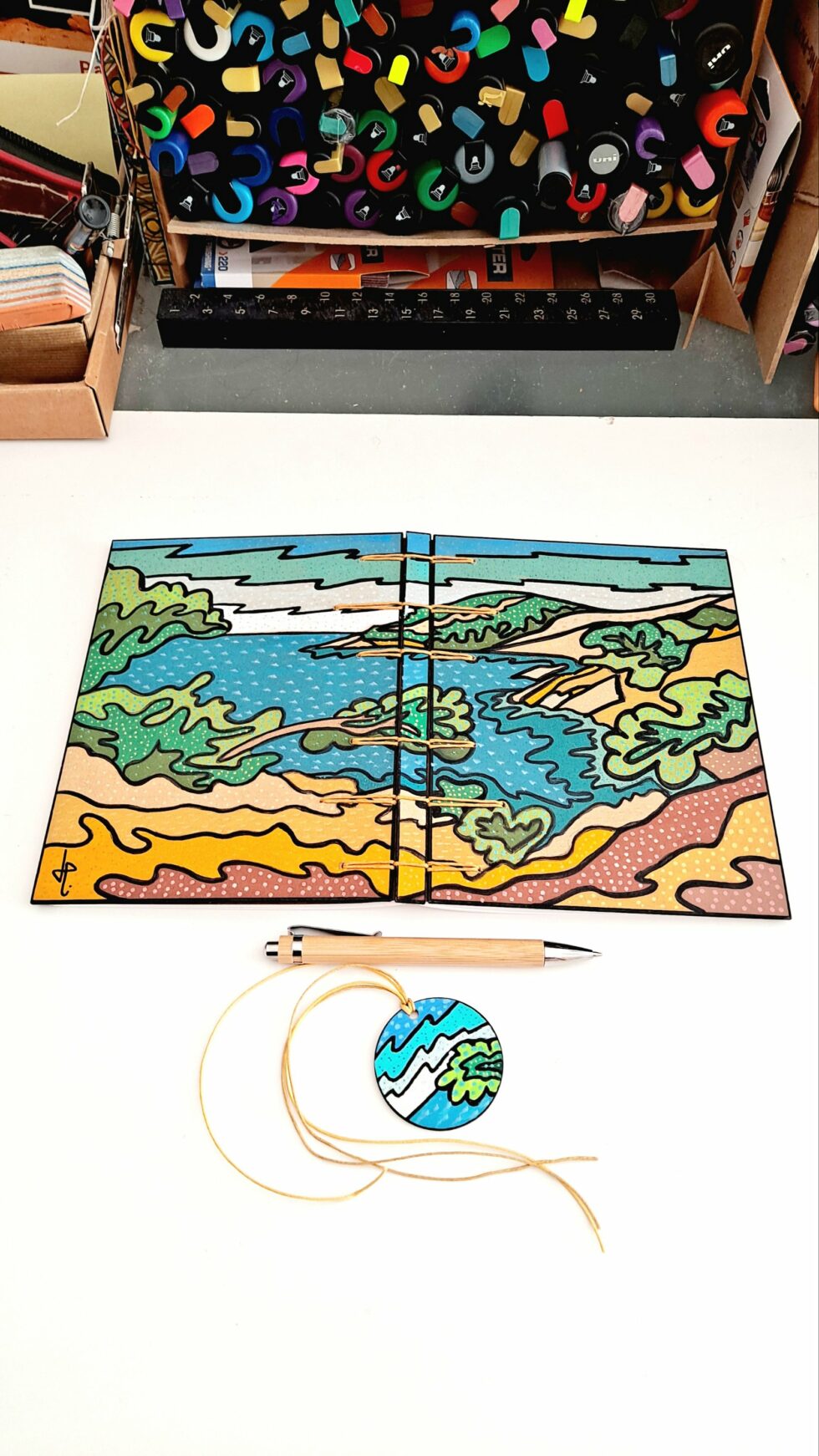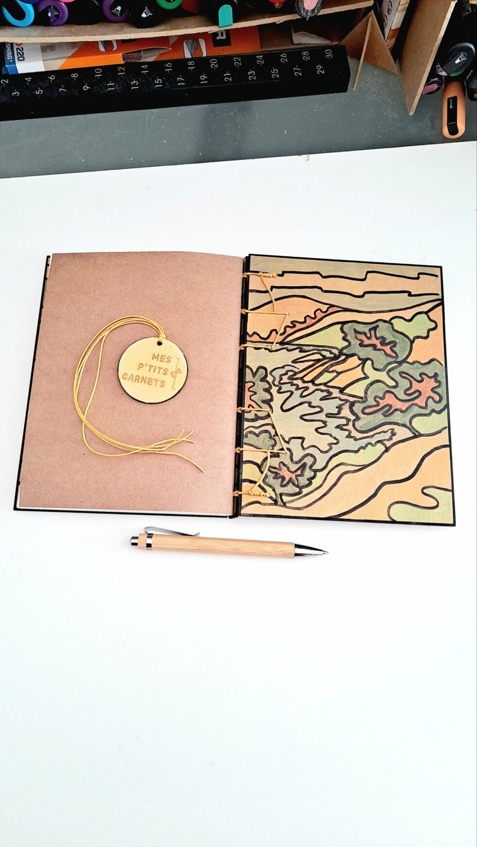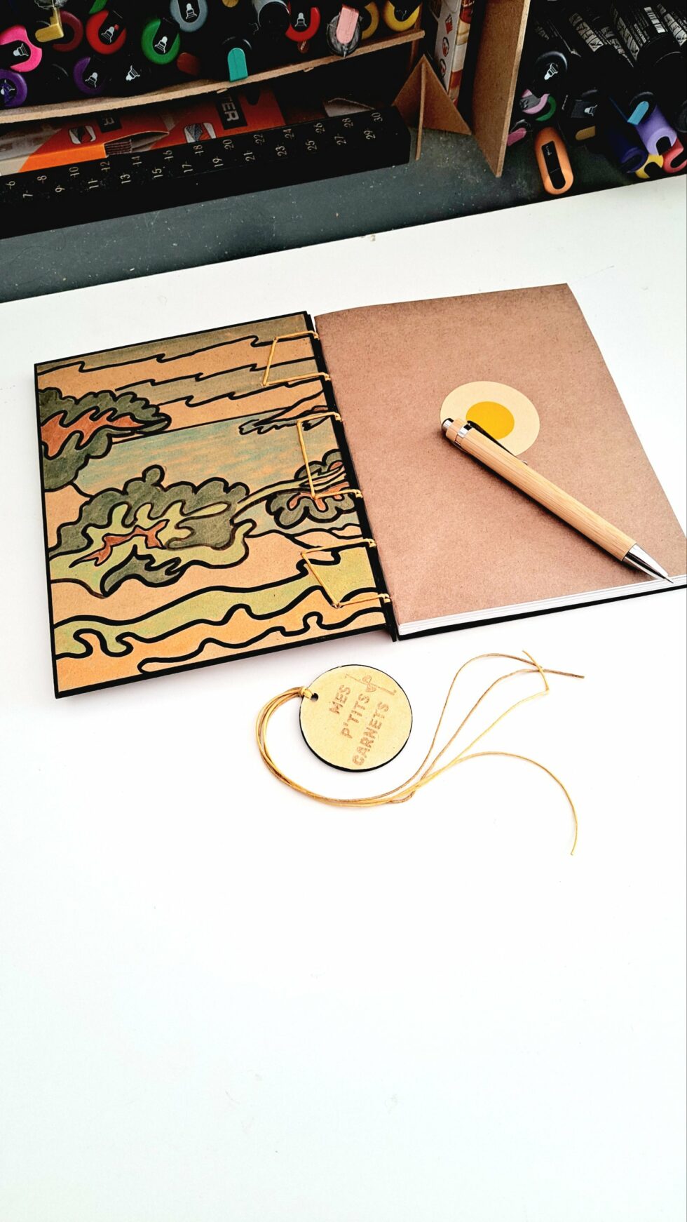 Notebook EMBRUNS et son marque-pages assorti, créés entièrement à la main, en un seul exemplaire, dans mon atelier à Marseille.