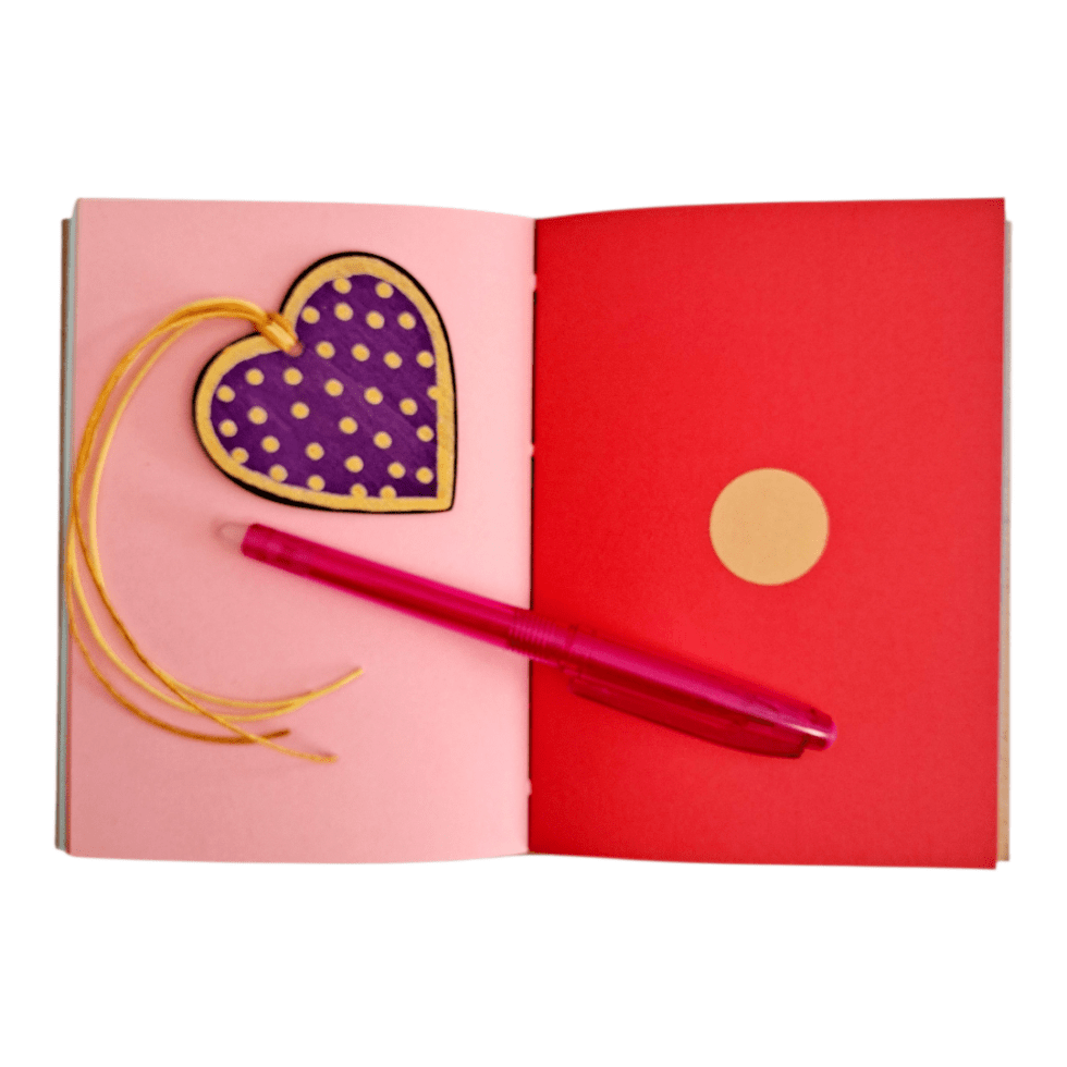 Carnet MY LOVE et son marque-pages assorti, créés entièrement à la main, en un seul exemplaire, dans mon atelier à Marseille.