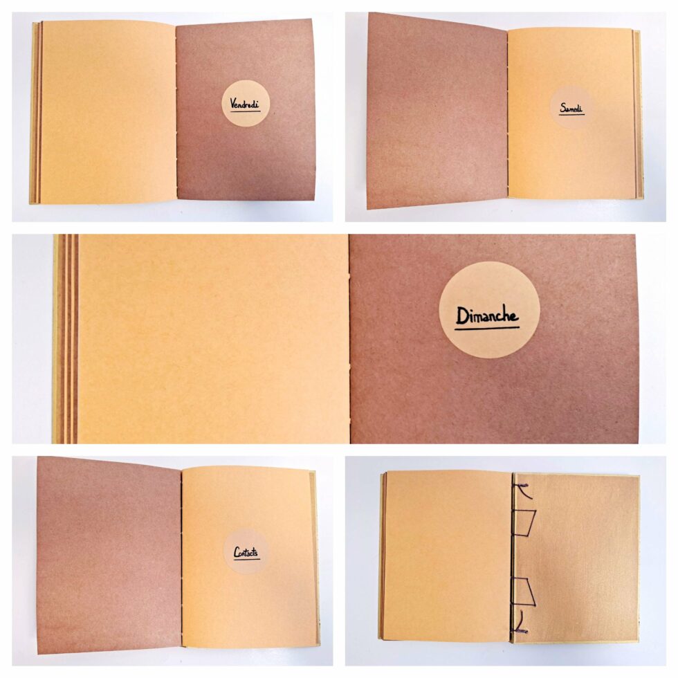 Carnet Semainier KALI et son marque-pages assorti, créés entièrement à la main, en un seul exemplaire, dans mon atelier à Marseille.