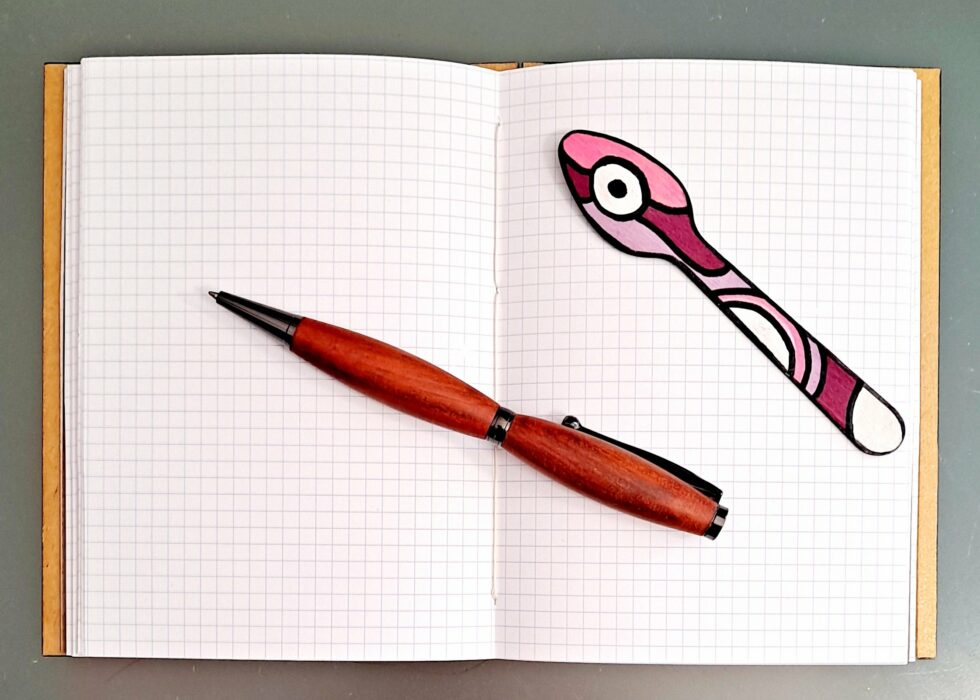 Je choisis des feuilles de bois pour la fabrication de Mes p’tits carnets. Le bois est le matériau le mieux adapté que j’ai trouvé. Il est un bon support pour mes peintures : il ne gondole pas et il ne se craquelle pas. Aussi, il assure une bonne résistance au carnet. J’ai choisi de ne pas utiliser de colle car le collage ne répond pas à mon envie de tendre le plus possible vers une éco-conception de Mes p’tits carnets. De plus, l’utilisation de colle rend plus difficile le processus de recyclage des papiers et des cartons, même à très faible dose. C’est pourquoi la couverture et les pages de Mes p’tits carnets sont 100% cousues !