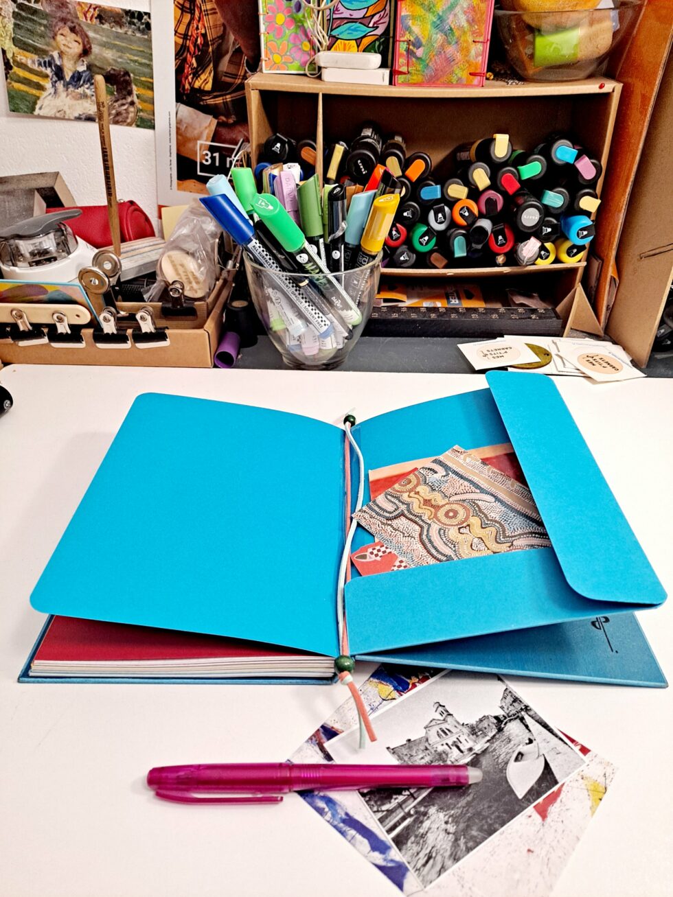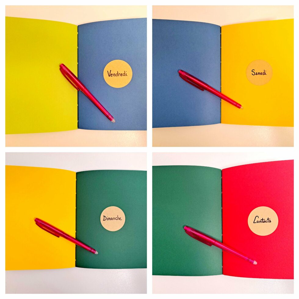 Notebook Semainier SWEET HOME et son marque-pages assorti, créés entièrement à la main, en un seul exemplaire, dans mon atelier à Marseille.